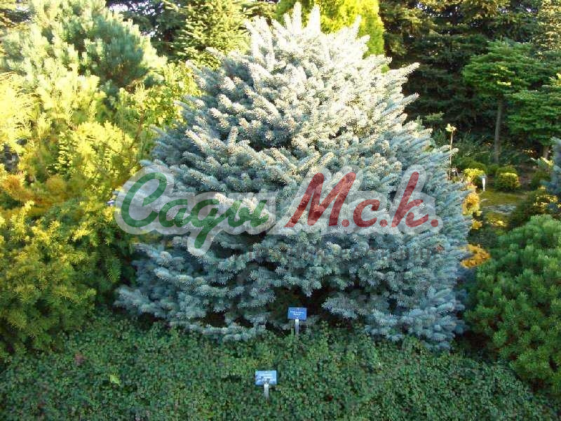 Ель канадская Блю Вондер "Blue Wonder" - медленнорастущая карликовая декоративная форма высотой не более 1,8 метра и диаметром 0,8 метра. К 10 годам достигает высоты 70 см и диаметра кроны 40 см. Имеет конусовидную, плотную крону и оригинальную серо-синюю окраску хвои. Ее иглы не приобретают со временем зеленую окраску. Весной появляется молодая немного более светлая хвоя, к середине лета цвет которой сливается с цветом старой хвои. Корневая система поверхностная.