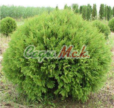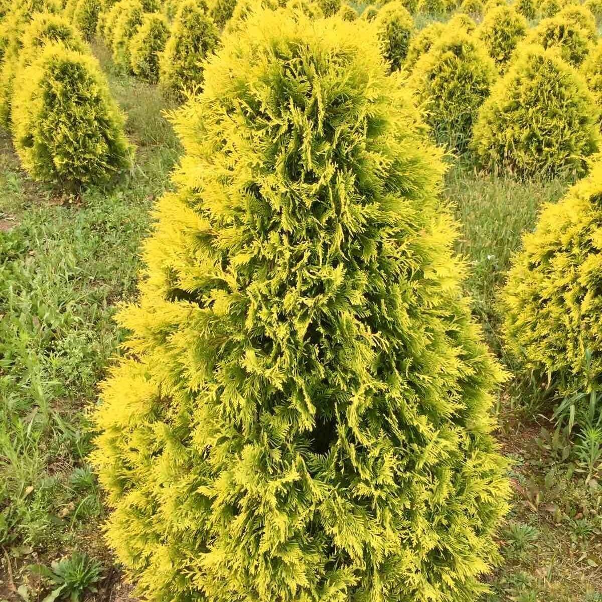 Прекрасный сорт невысокой медленнорастущей туи конической формы. В десятилетнем возрасте высота растения составляет 2м, максимальная высота – 5м. Хвоя ярко-желтая чешуевидная. В период активного роста цвет листвы золотистый, к зиме хвоя становится бронзовой